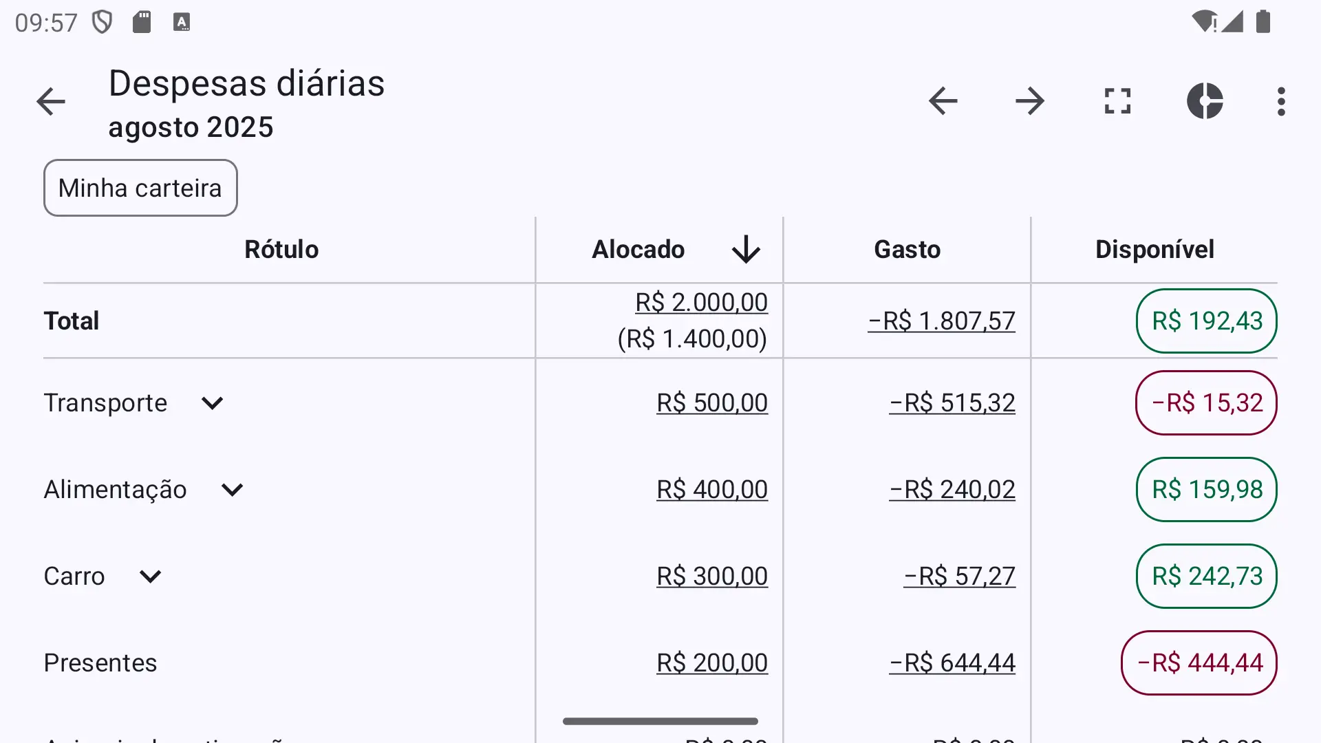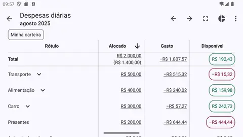Orçamento: Compare seus gastos com os limites definidos por categoria em uma base diária, semanal, mensal ou anual. | ✓ | ||