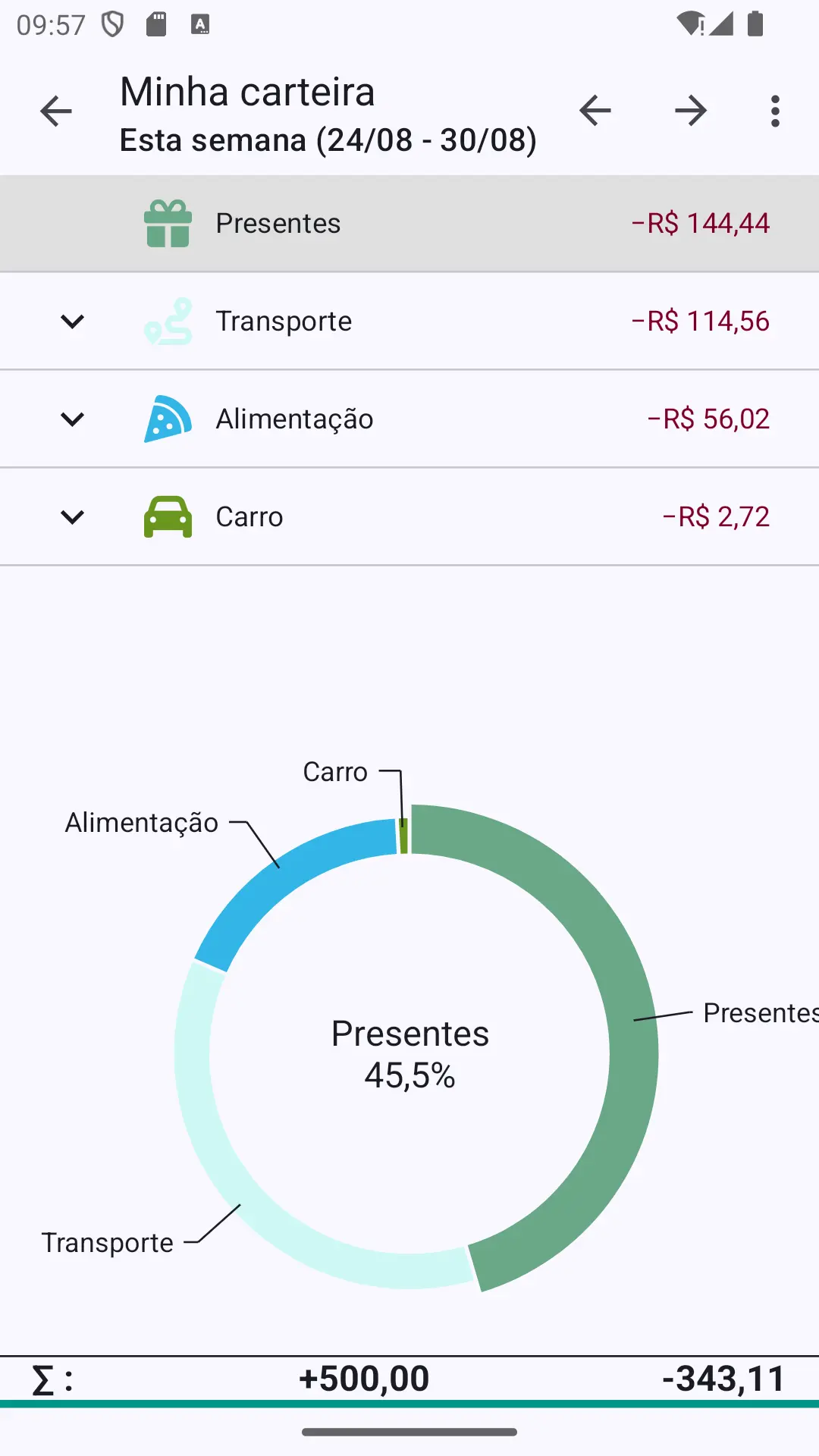 Gráfico de pizza: Visualize a distribuição estatística de transações por categoria em diferentes períodos (anos, meses, semanas, dias) | ✓ | ✓ | ✓ |