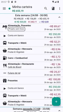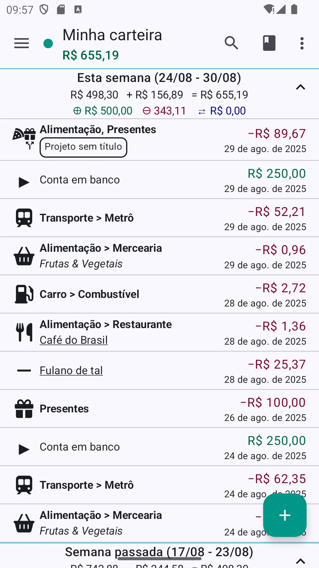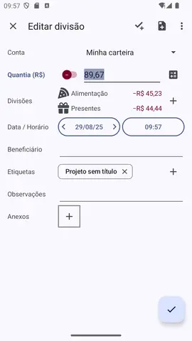 Transação dividida: uma única transação pode ser dividida em várias partes (categorias e transferências) | ✓ | ✓ | ✓ |